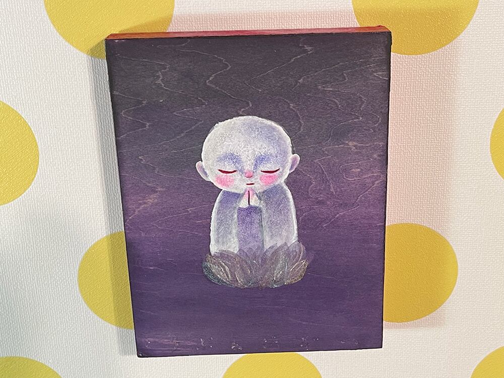 極彩色の花に乗っかるお地蔵作品を描いてみました!