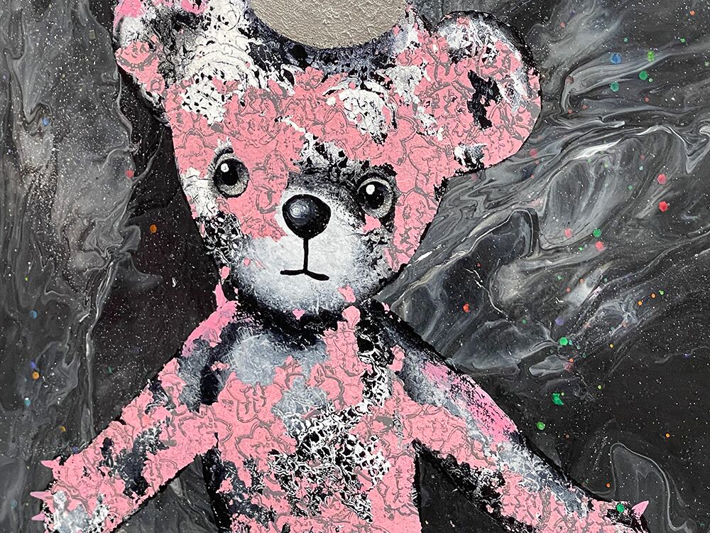 黒を基調としたポーリングを背景にちょっとゴシックなレース模様のココくまです!シルバーの大感が素敵でしょ?