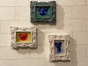 木枠にミニチュアキャンバスに描かれているため、ミニイーゼルに飾って頂けるのはもちろん、軽量なので、イメージ写真の様に、壁にも画鋲等を使用して飾って頂けます。