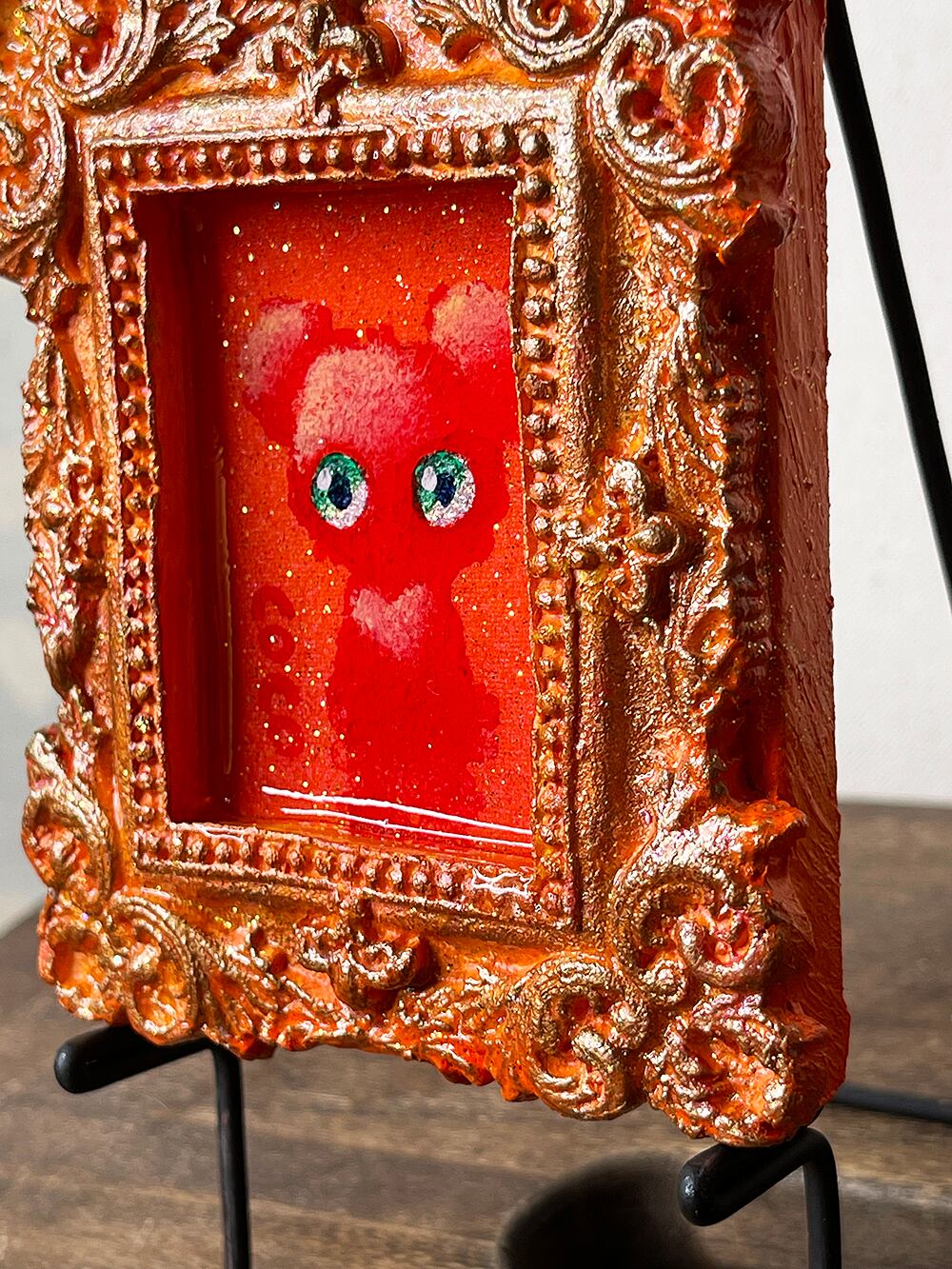 ミニチュアキャンバスにcocoくまを描き、石粉粘土でアンティーク風の額を作り、合体させた印籠サイズのミニチュア作品です。作品タイトルは生ライブに参加された視聴者様から公募して付けています。