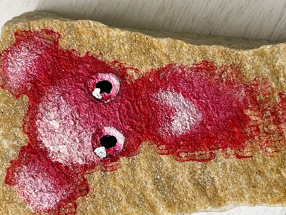 カナリアクォーツという金運の上がりそうな黄色石に描いたストーンアートです。