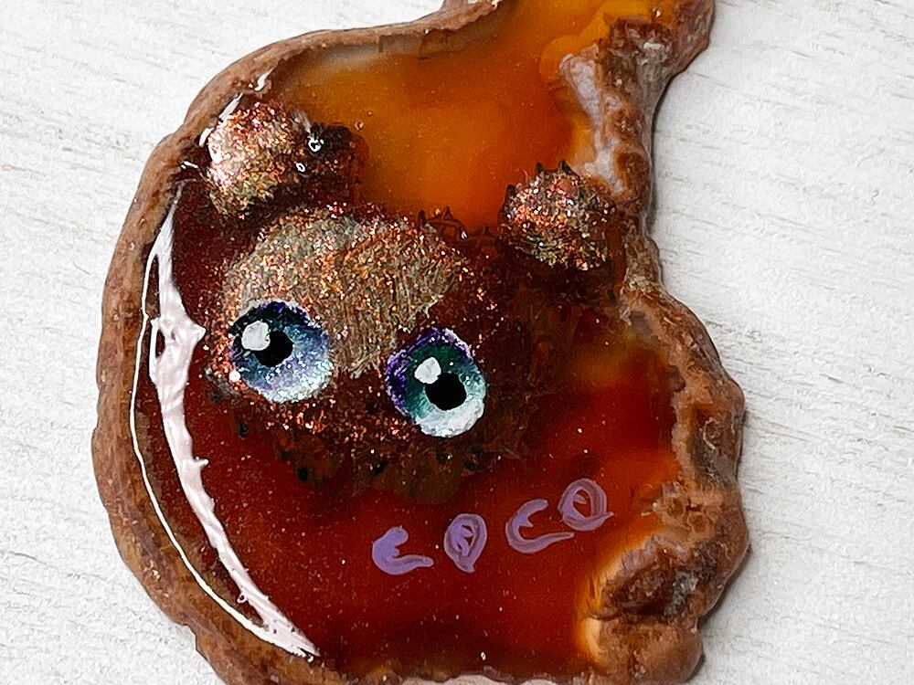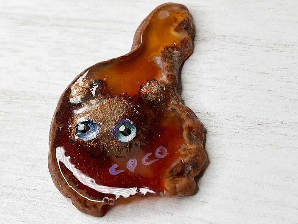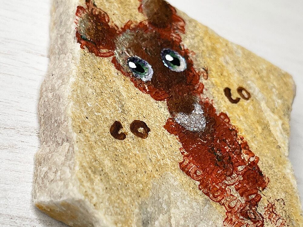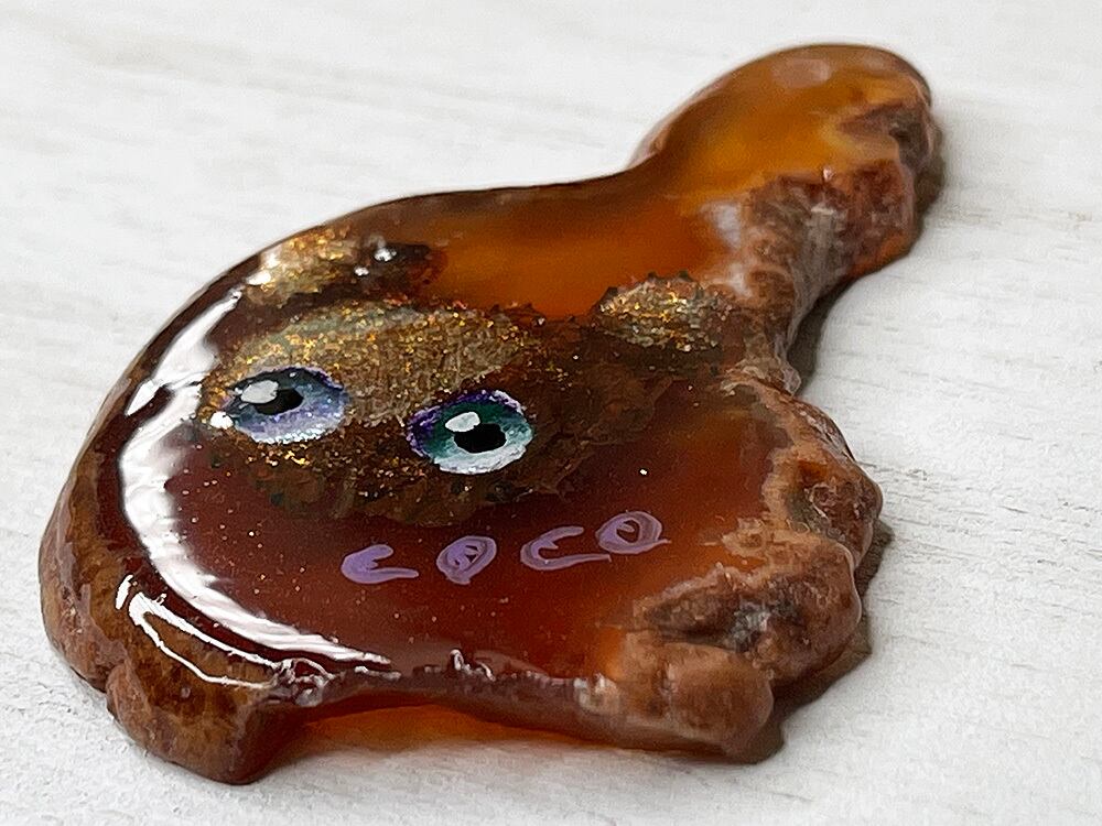 天然瑪瑙をスライスした独特な天然柄の上に、描いています。