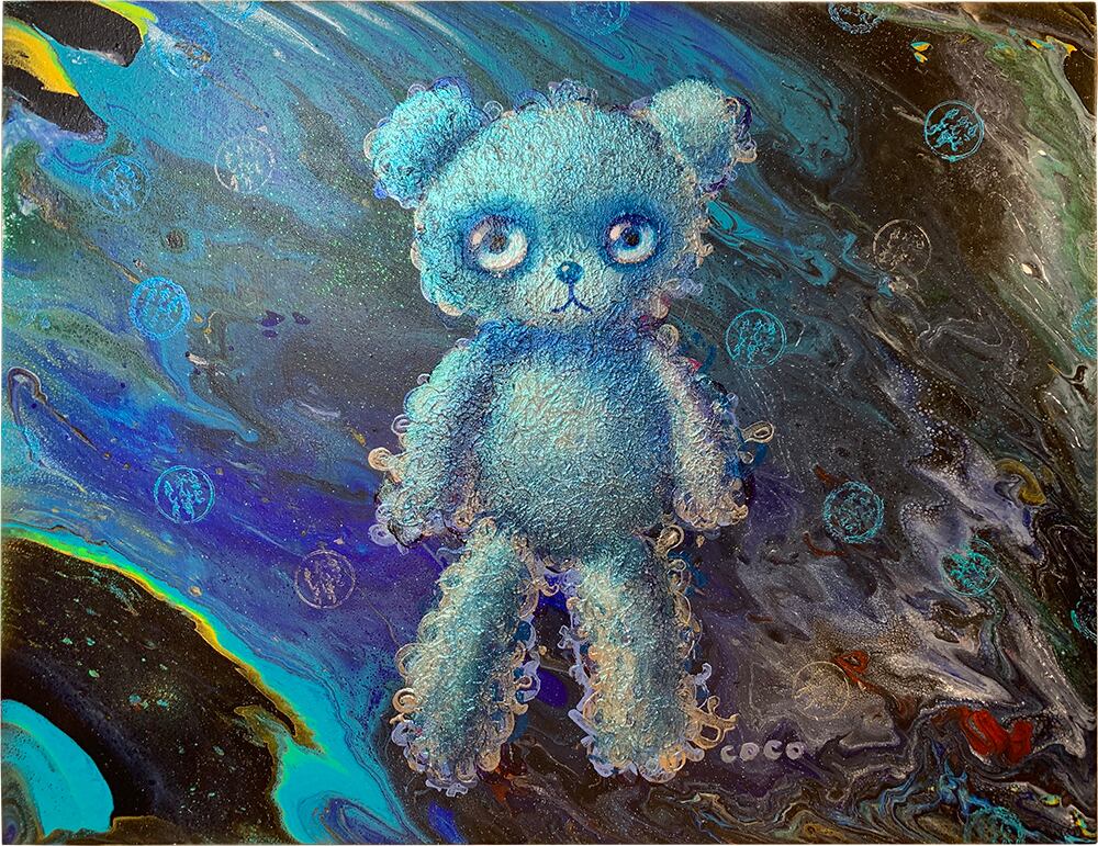 また、cocoくまはその愛くるしい姿と共に現実と非現実の架け橋となります。銀河のようなポーリングに包まれたcocoくまが、あなたを別世界へ誘ってくれるかのようです。勇気や希望が溢れ、人生がより素晴らしいものになるでしょう。