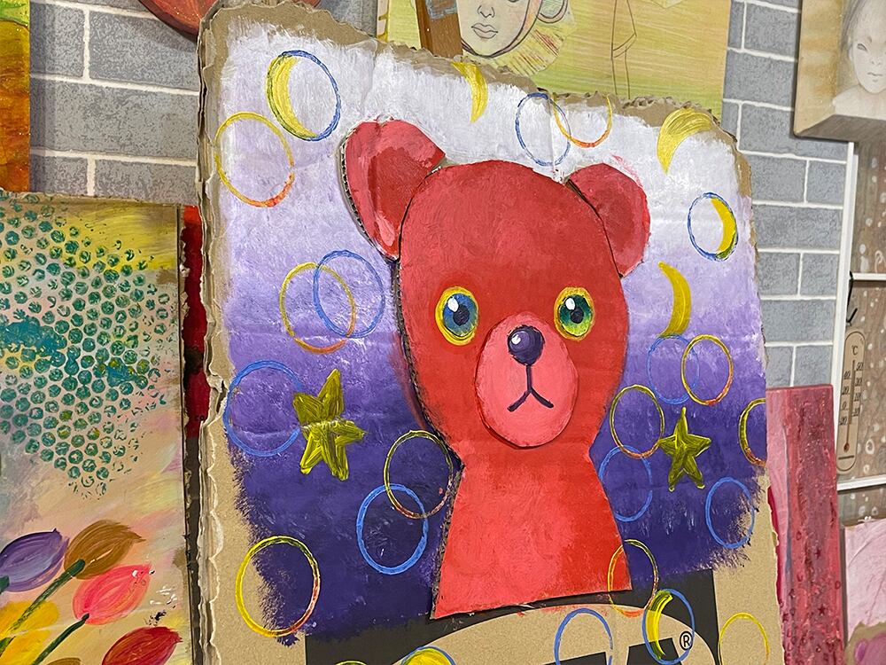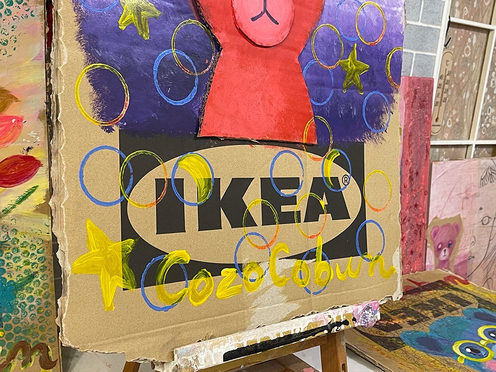 生ライブ配信にてダンボールに描いたドローイング作品です。